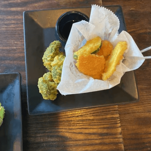 Battered and fried carrots, sweet Japanese potatoes, zucchini and broccoli, served with house soy sauce. This item requires 8 minutes to prepare