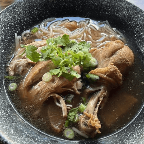 Thin rice noodles with your choice of chicken, vegetables or tofu with cabbage and carrots. Cannot be vegan/vegetarian. Does not come with a boiled egg