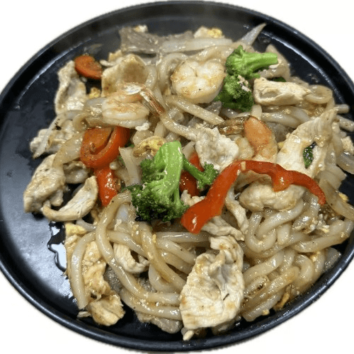 Flat rice noodles stir-fried with your choice of protein and broccoli. Contains egg