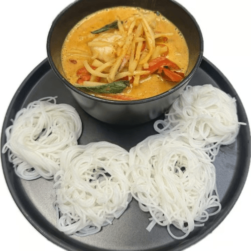 Served with vermicelli noodles, not rice. Red curry with your choice of protein, bamboo, red bell peppers, and Thai Basil. A hot dish