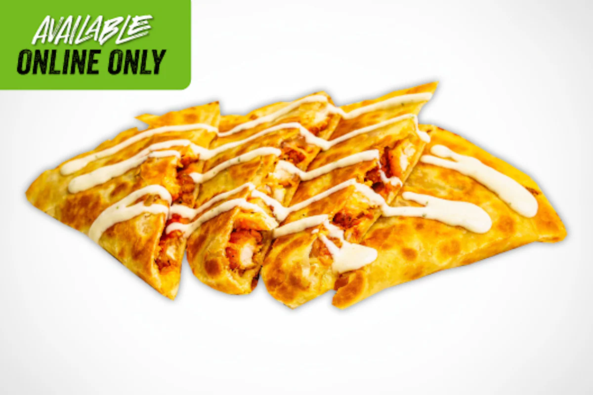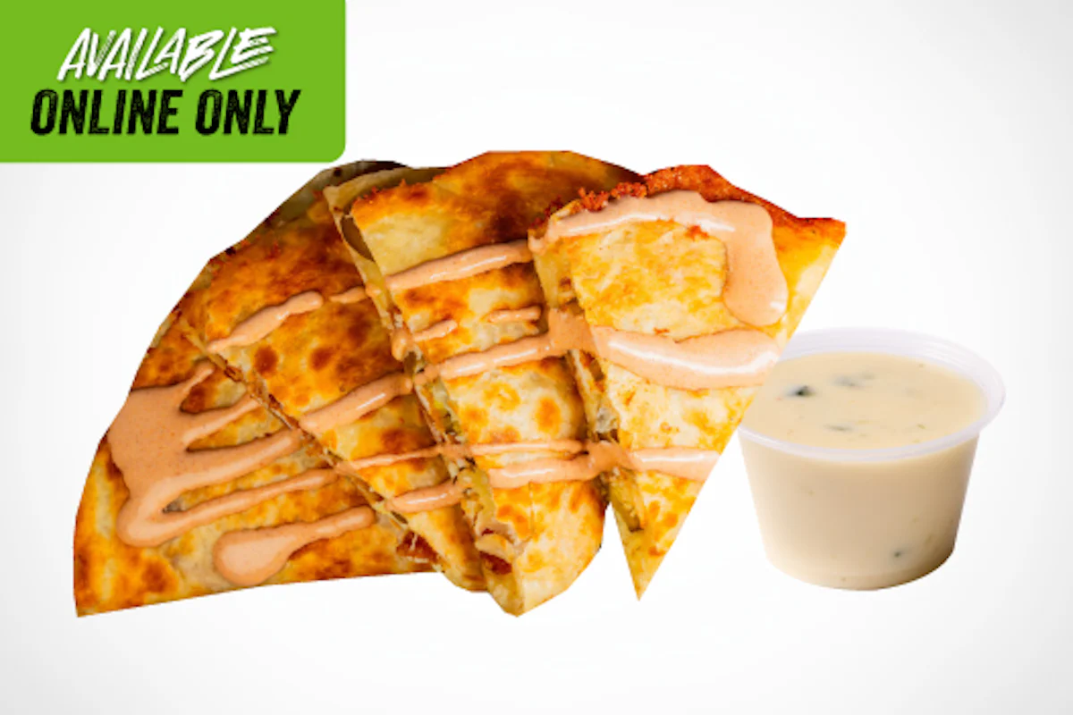 Crispy, spicy, and packed with flavor. This quesadilla is loaded with golden fried chicken, cheese, and a kick of buffalo sauce, finished with a drizzle of creamy ranch.