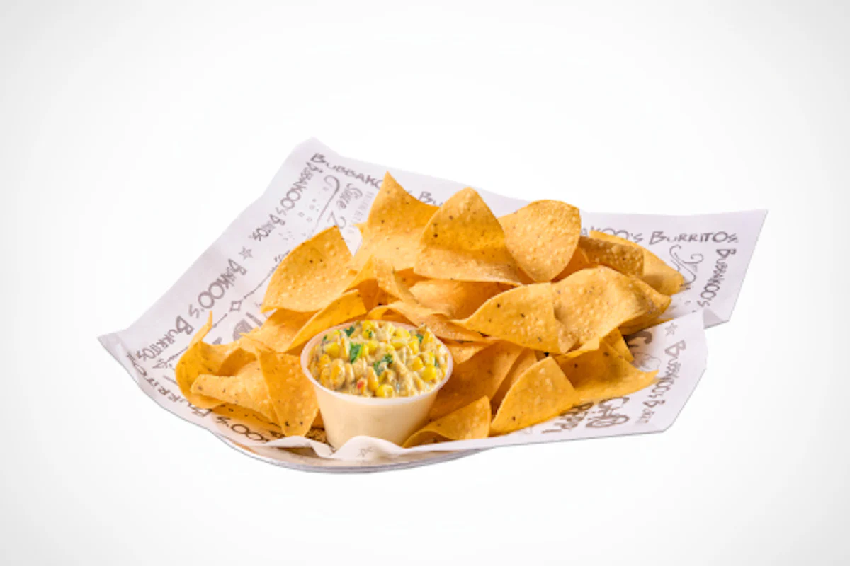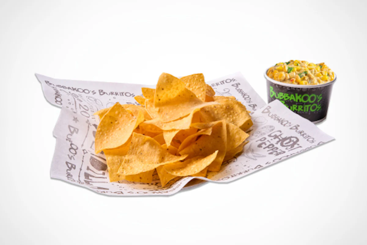 Made fresh daily tortilla chips served with new house made mexican street corn (8oz).