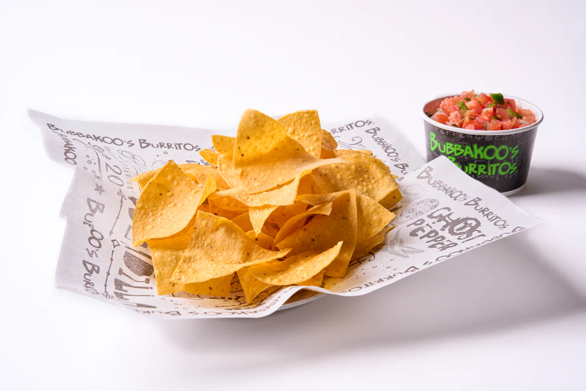 Made fresh daily tortilla chips served with one of our house made salsas (4oz).