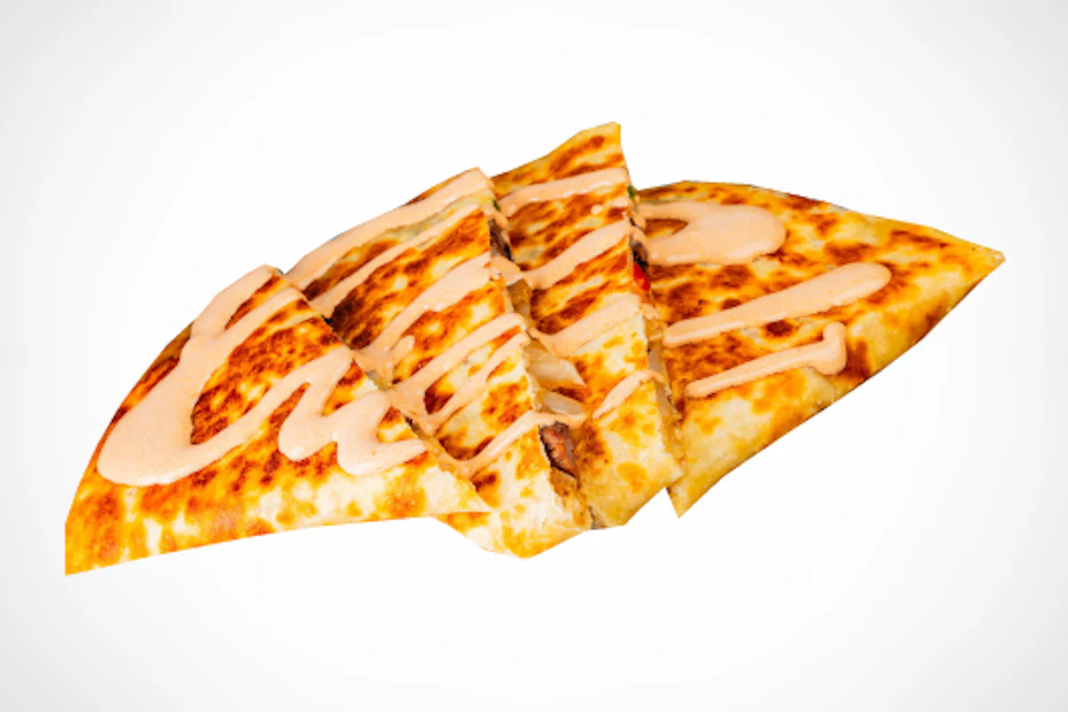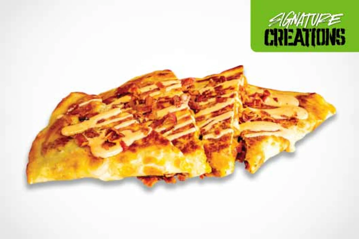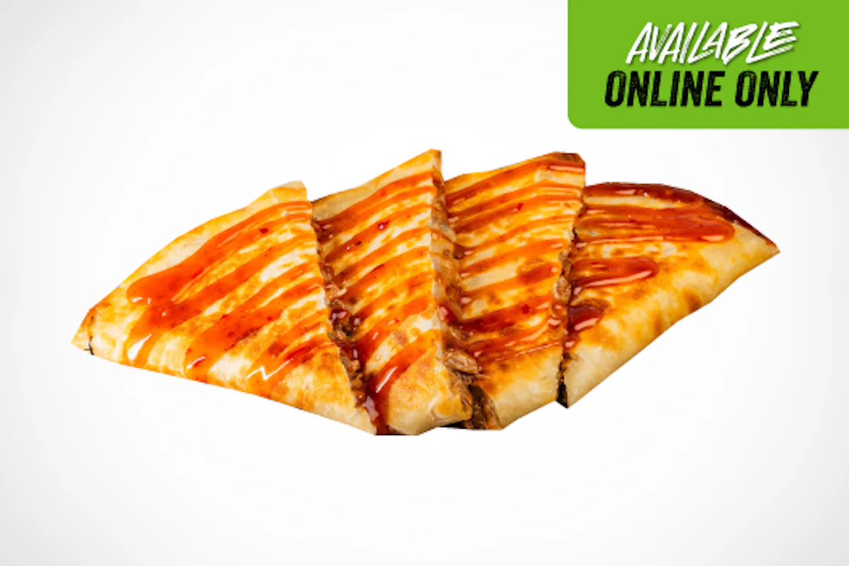 Crispy, spicy, and totally indulgent. This quesadilla is loaded with golden fried chicken, fresh bacon, melty cheese, and finished with a drizzle of creamy sriracha ranch. Crunchy, cheesy, and packed with bold flavor—every bite is a crave-worthy explosion.
