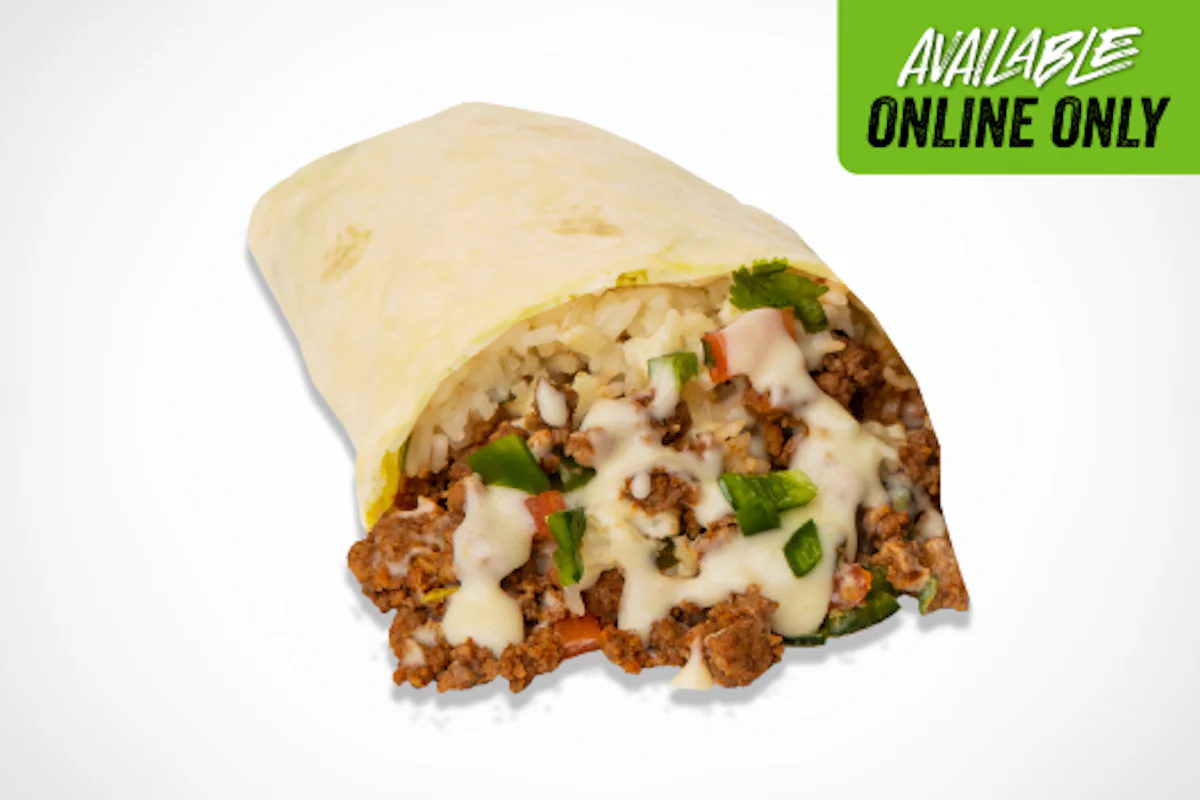 Grilled steak, sautéed peppers & onions, signature queso, and cilantro-lime rice—all wrapped up in a warm, crave-worthy tortilla. Pro Tip: Add that boom boom or garlic parm sauce for that bold flavor.