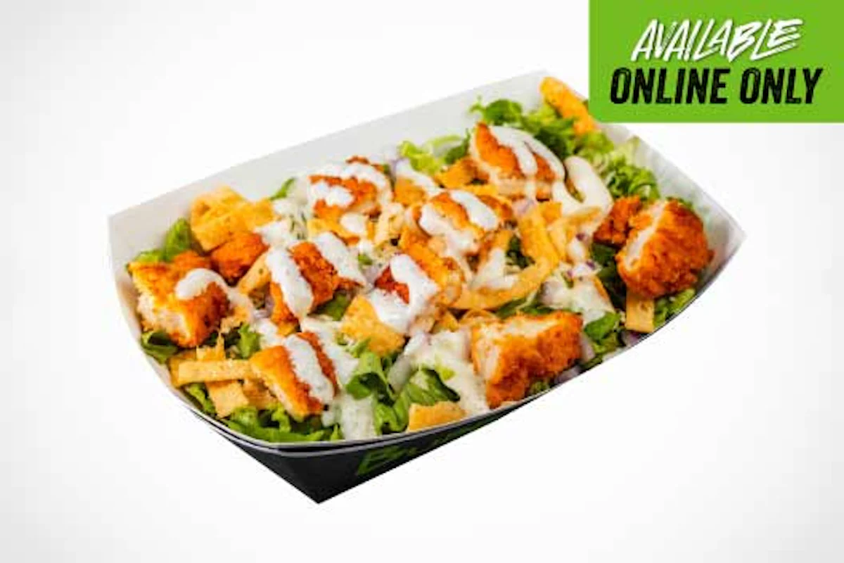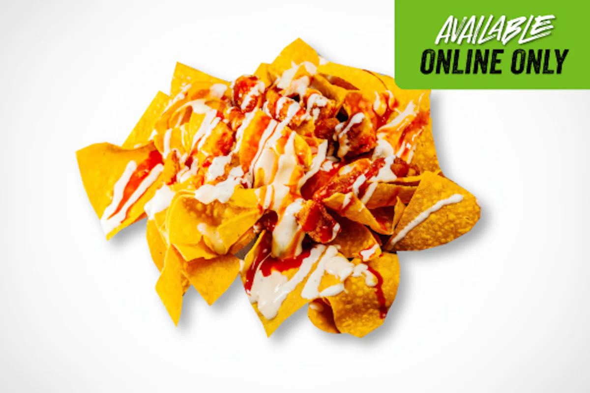 Crispy tortilla chips piled high with crispy chicken, signature queso, buffalo sauce, and ranch.