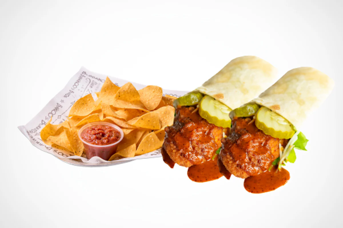 Enjoy two of your favorite saucy wraps paired with a side of crispy chips and drink. -SOUTHERN BBQ WRAP - CRISPY BBQ CHICKEN, RANCH, CHEESE AND LETTUCE -BUFFALO RANCH WRAP - CRISPY BUFFALO CHICKEN, RANCH, CHEESE AND LETTUCE -NASHVILLE HOT WRAP - CRISPY NASHVILLE HOT CHICKEN, PICKLES, CHEESE AND LETTUCE -GENERAL TSO WRAP - CRISPY GENERAL TSO CHICKEN, JALAPENO, CHEESE AND LETTUCE