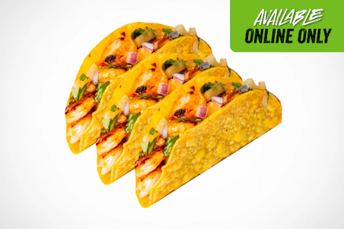 Double the shrimp, double the flavor. Three crunchy hard shell tacos loaded with extra sweet chili-glazed shrimp, pineapple salsa, cilantro and cheese. Served with a side of chips and salsa.