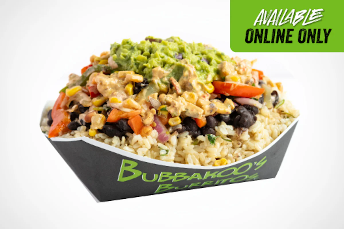 This bowl proves veggies can bring big burrito energy. Served brown rice, black beans, chipotle crema sauce, fresh guacamole and unlimited fresh veggies. Note: This product is currently only available online.