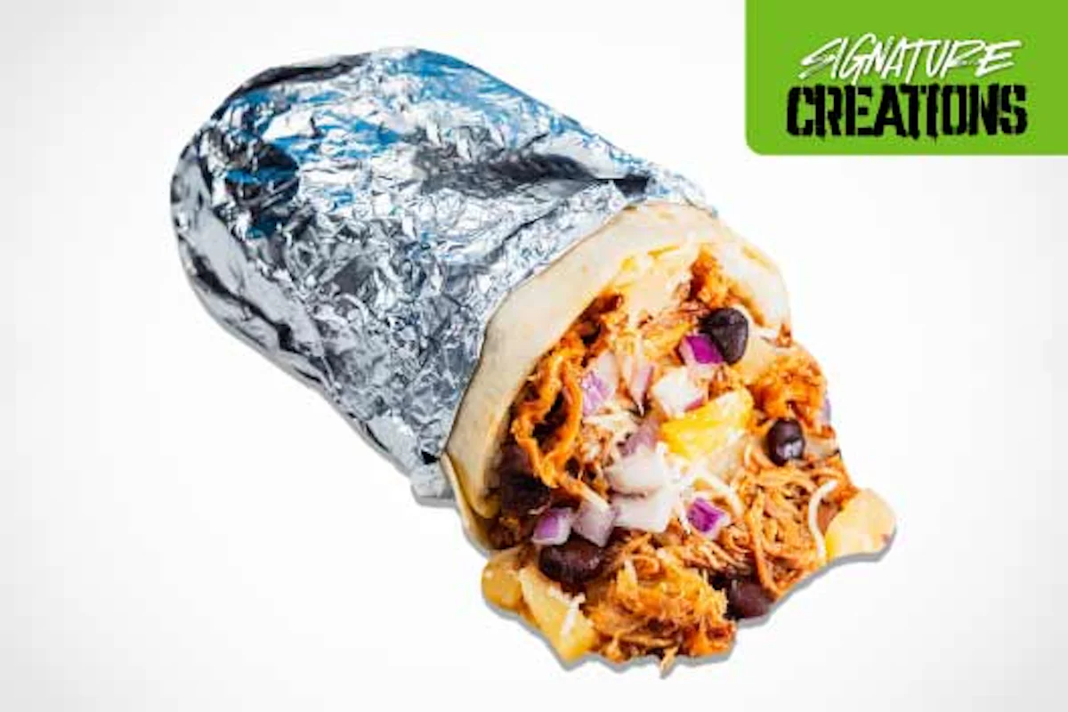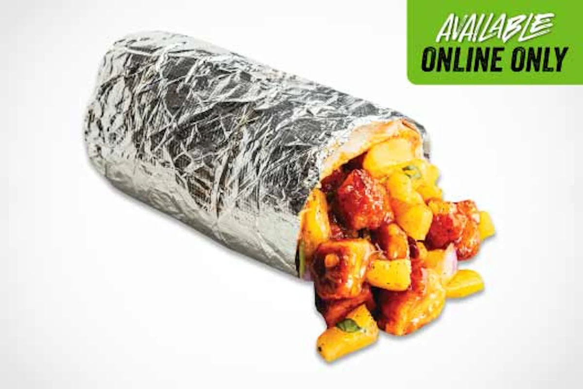Sweet, savory, and tropical. The Aloha Pork Burrito is packed with tender, marinated pork tossed in mango habanero, cilantro-lime rice, black beans, pineapple salsa, red onions and cheese all wrapped in a warm tortilla.