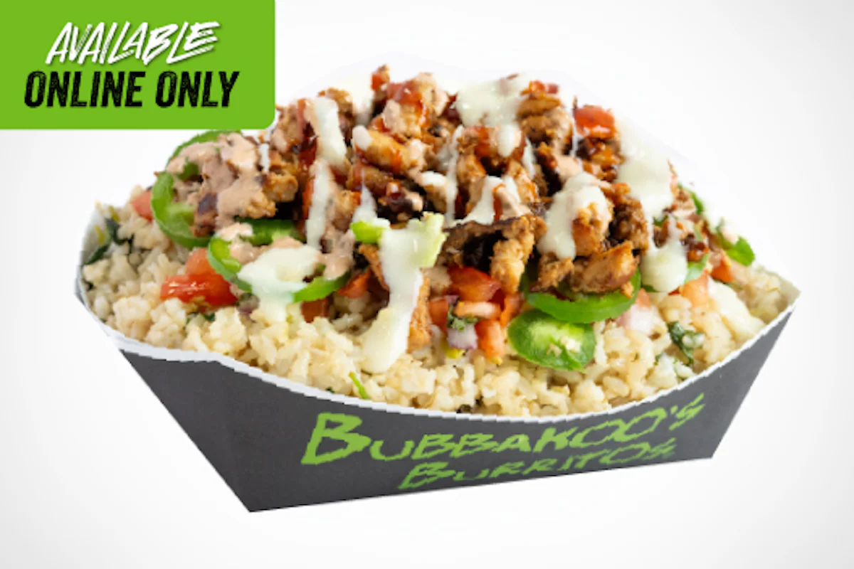 Fuel your recovery without the guilt, built for performance after a lift or long day. Double protein grilled chicken or steak bowl, served with cilantro lime brown rice, pico de gallo, fresh jalapenos, our signature queso and sauced with sriracha honey or chipotle crema. Note: This product is currently only available online.