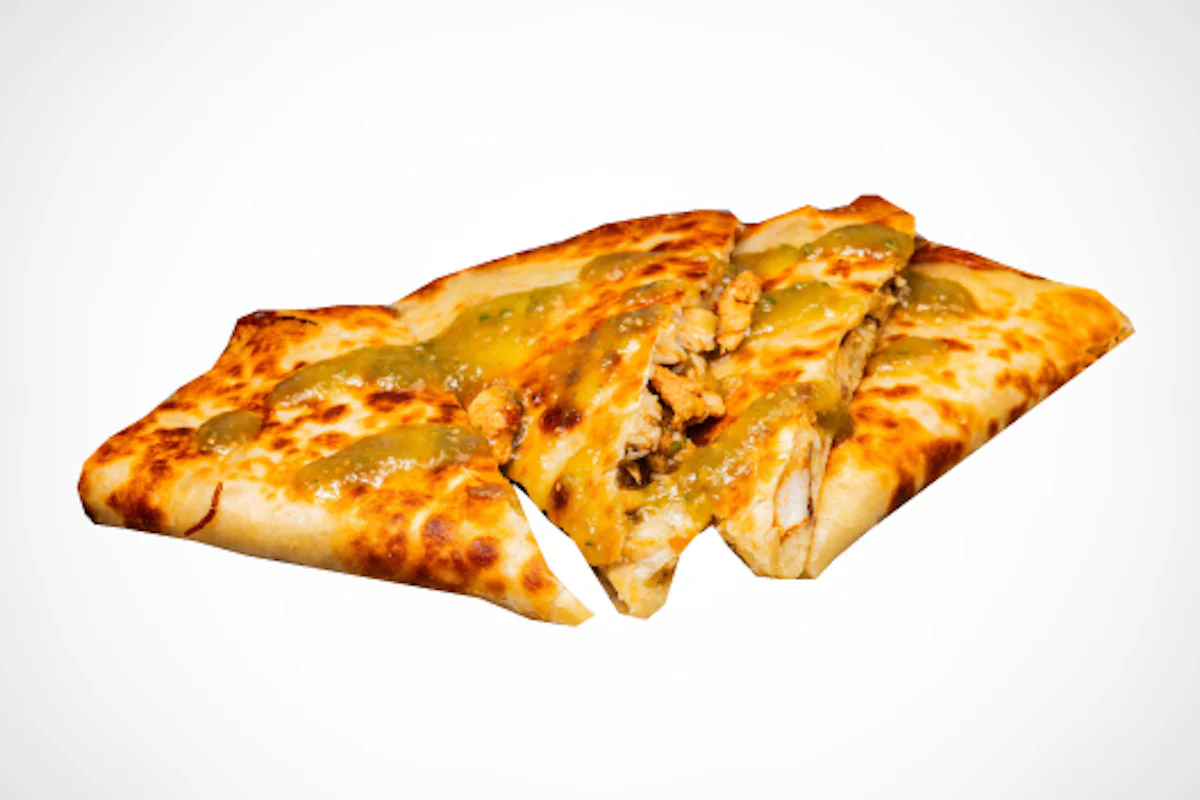 Fresh, zesty, and packed with flavor. This quesadilla is loaded with melty cheese, and fresh grilled chicken, all pressed in a golden, crispy tortilla and finished with tangy, bright salsa verde (served on side).