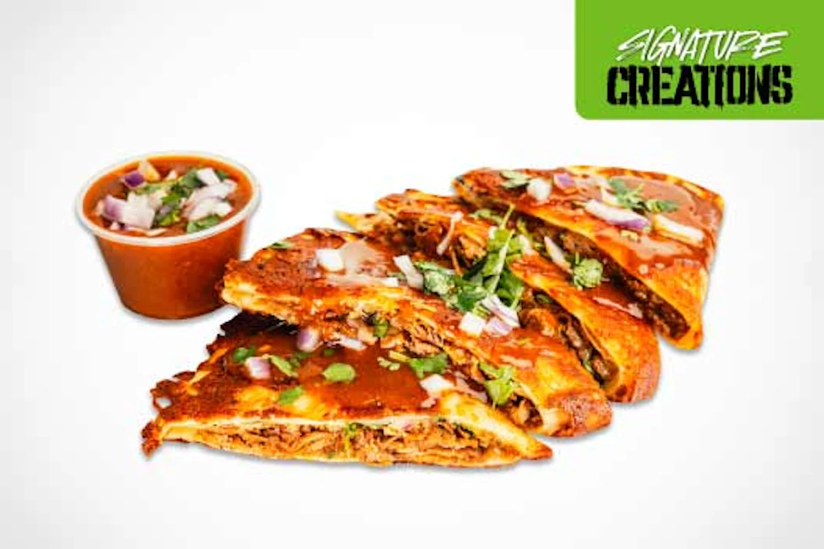 Bold, cheesy, and packed with flavor. The Crispy Cheese Birria Dilla features tender, savory birria meat and melty cheese, pressed into a golden, crispy tortilla and served with a rich, flavorful dipping sauce. Crunchy on the outside, gooey on the inside—this dilla takes indulgence to the next level.