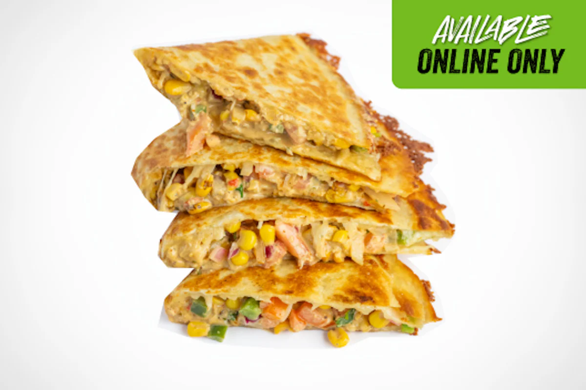 Sweet, smoky, and packed with flavor. This veggie dilla is loaded with our new mexican street corn, sautéed peppers and onions, melty cheese, and a drizzle of ghost pepper sauce, all pressed into a crispy tortilla.