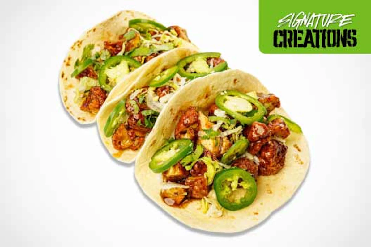 Sweet, spicy, and totally crave-worthy. The General Tso’s Taco Trio features three soft tacos loaded with saucy General Tso’s crispy chicken protein, cilantro lime white rice, fresh jalapenos, cilantro, lettuce and a side of chips. A playful twist on a classic favorite—taco style.