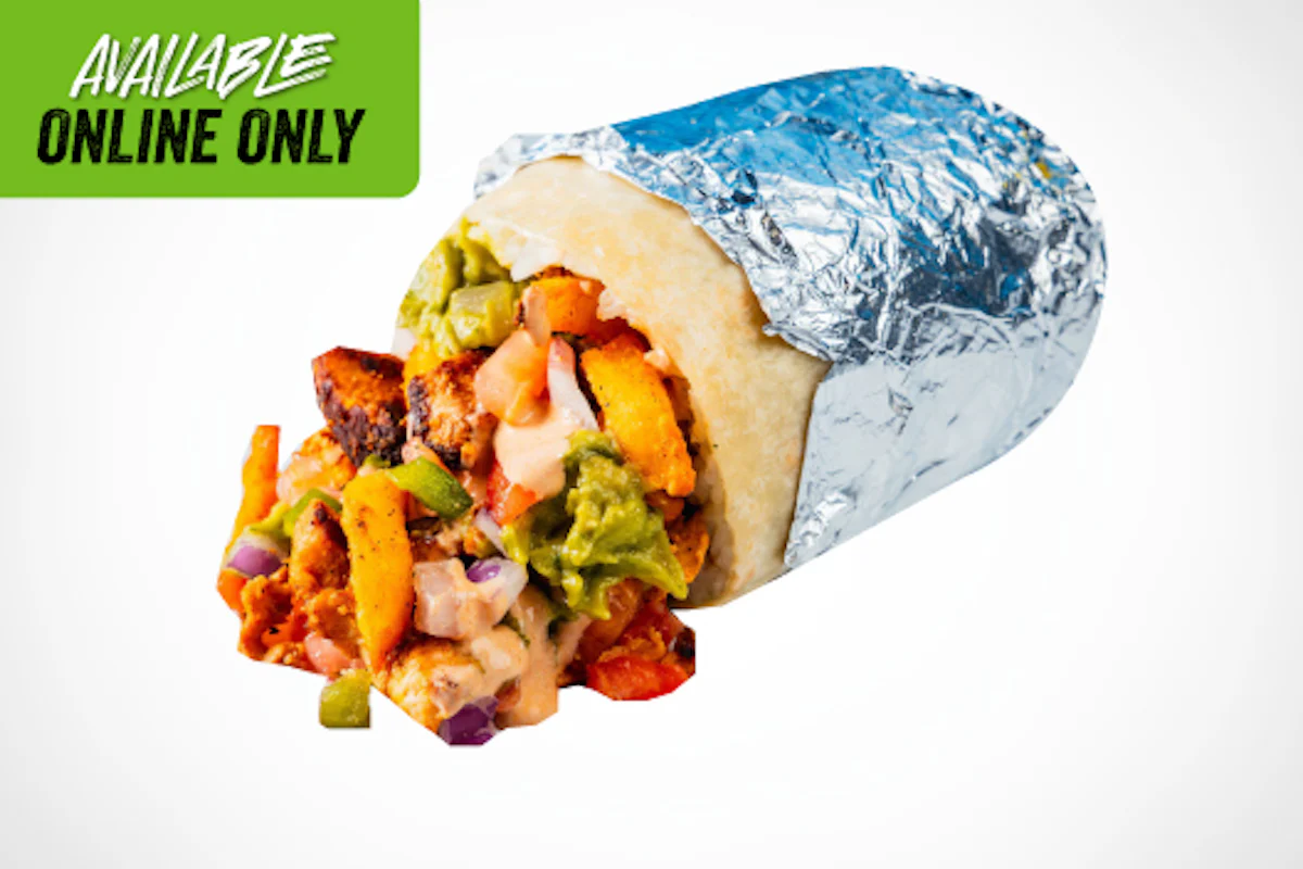 Bold, creamy, and packed with flavor. This burrito features grilled chicken, cilantro-lime rice, black beans, fresh fajita veggies, cheese, pico de gallo, pickled jalapenos and guacamole, all finished with smoky chipotle crema and wrapped in a warm tortilla.